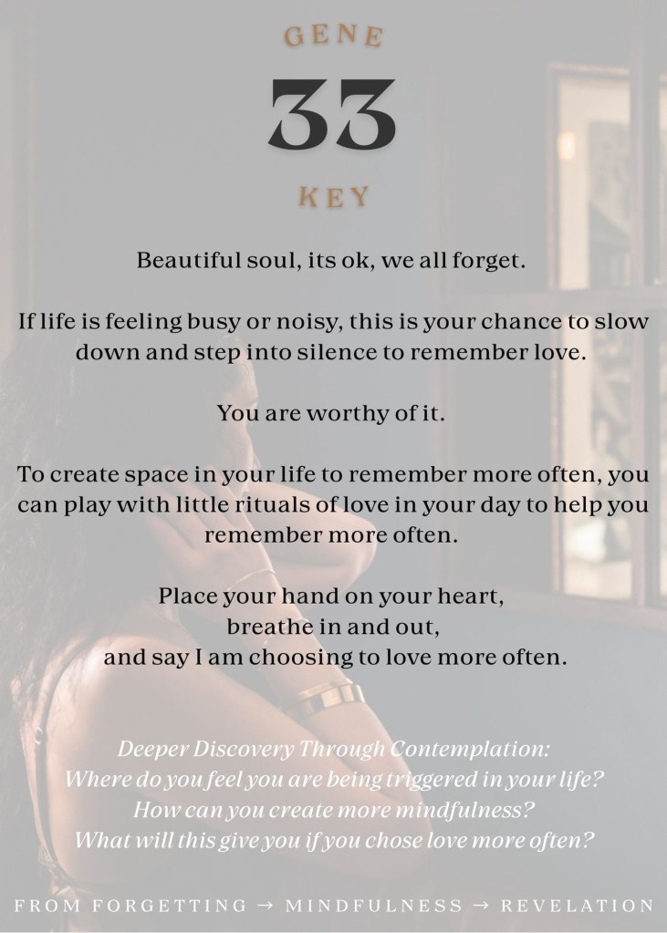 Every single Gene Key that you will work with always links back to beautiful Gene Key 33 ~ To Remember;